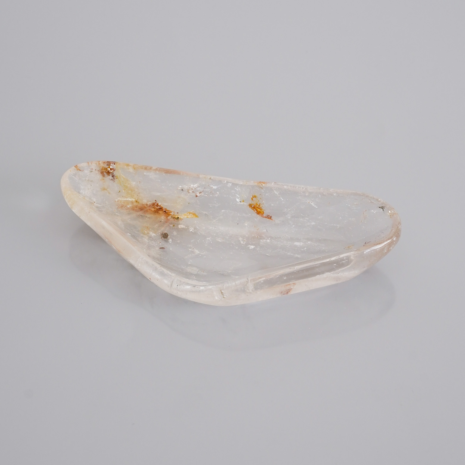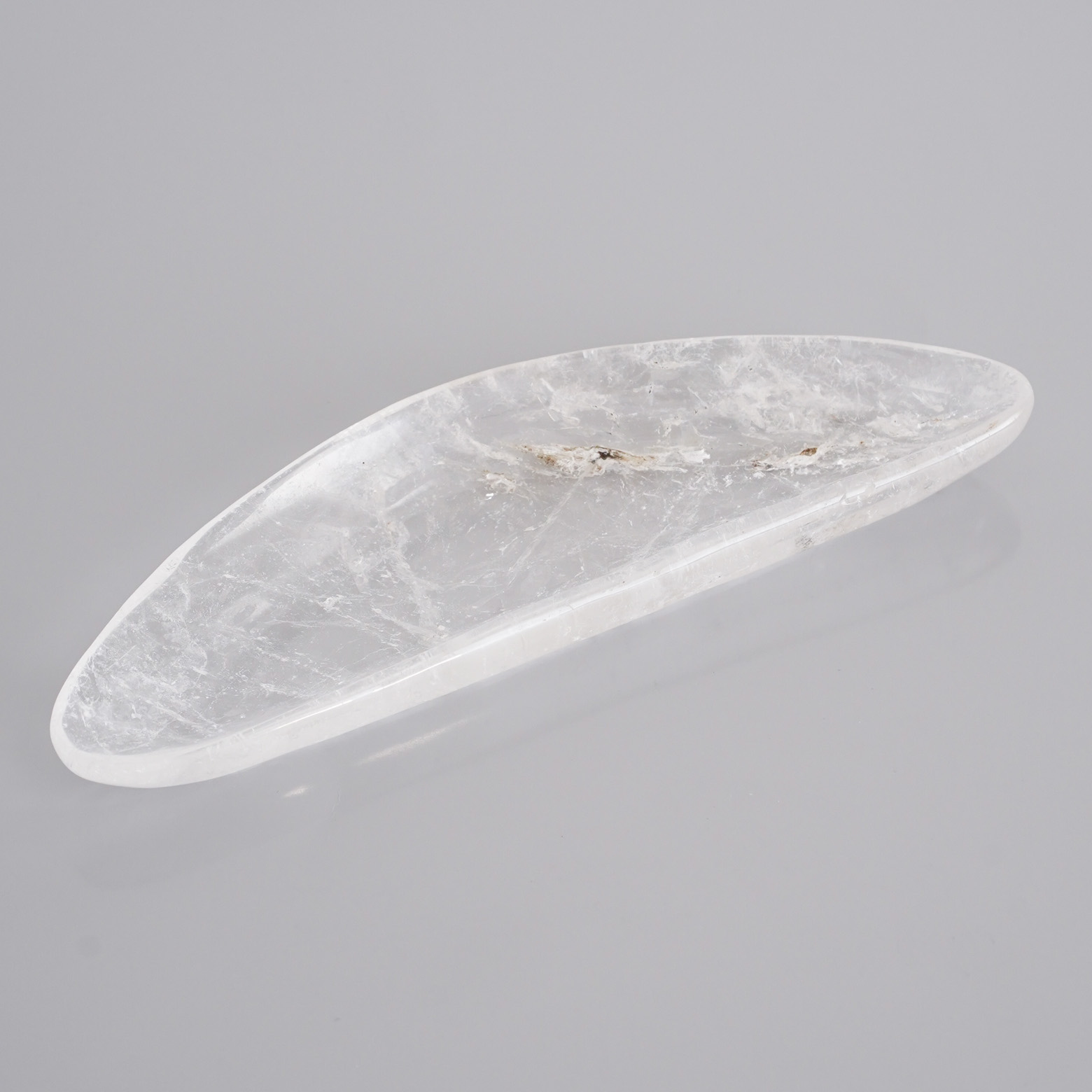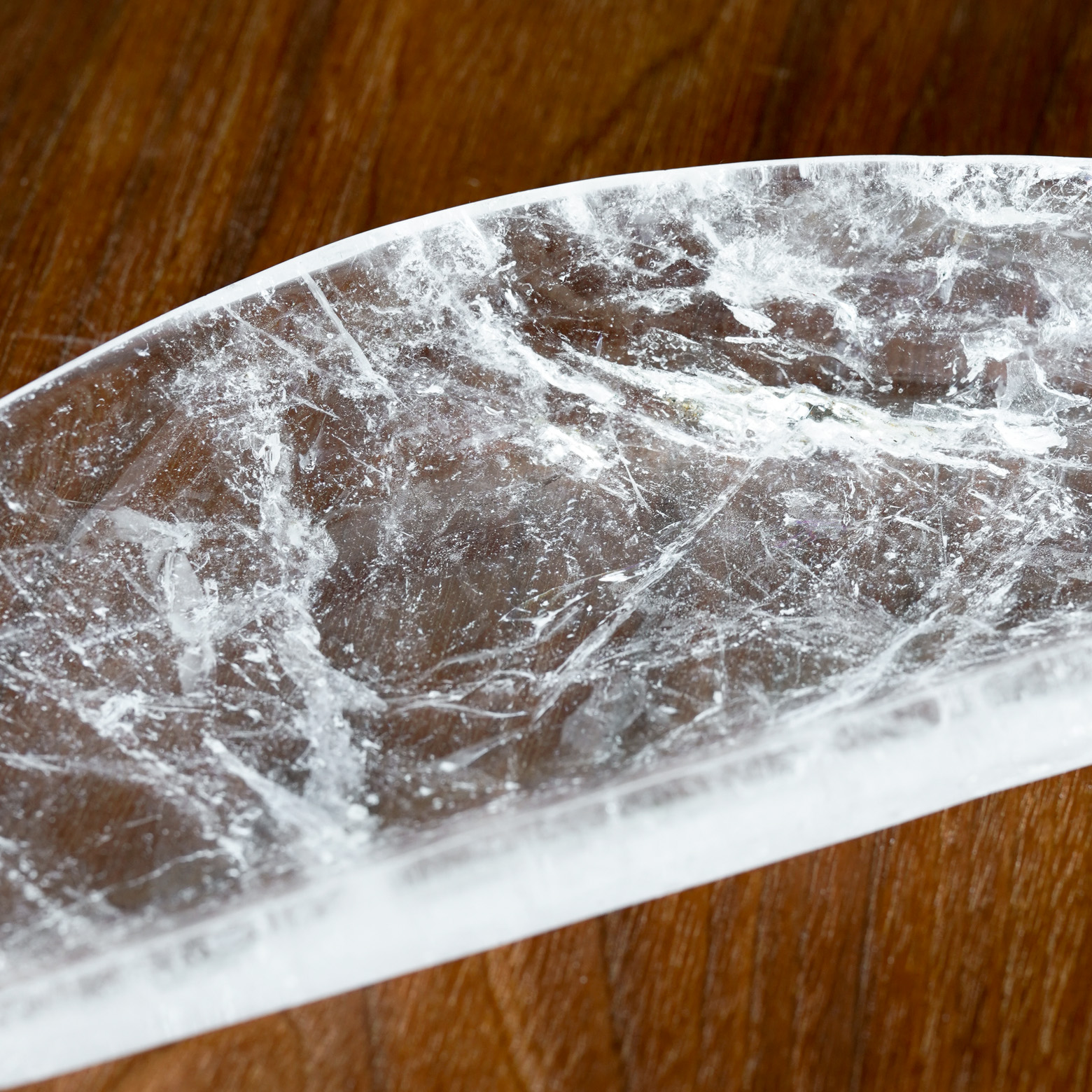 水晶を削り出して作られたこのトレイも、きっと同じ。お気に入りのジュエリーを置いたり、いつものリップや筆記具をしまったり。その透明な静けさが、暮らしの中の小さな特等席になるはず。